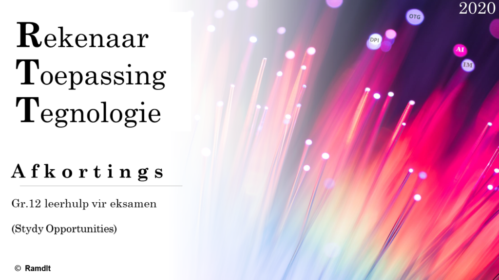 Die afdeling vir Afkortings, Teminologie en Vergelykings is noodsaaklik vir eksamen voorbereiding. Onthou net dit is slegs ‘n uittreksel van die geheel. Jy moet nog steeds die afsonderlike modules se werk óók lêer.